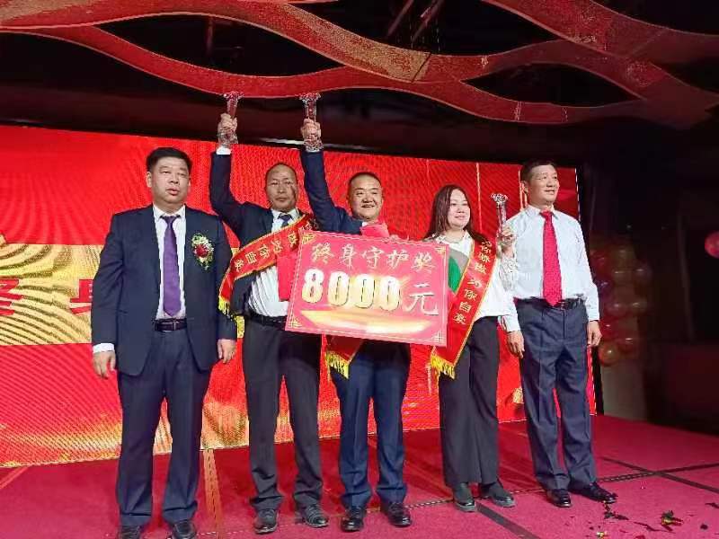 隆成集團(tuán)從來沒有忘記過那些為公司的發(fā)展默默無聞的貢獻(xiàn)者和守護(hù)者。頒獎(jiǎng)環(huán)節(jié)是整個(gè)晚宴的重要環(huán)節(jié),共頒發(fā)4個(gè)獎(jiǎng)項(xiàng)。分別是風(fēng)雨同舟獎(jiǎng)、舍身?yè)?dān)當(dāng)獎(jiǎng)、終身守護(hù)獎(jiǎng)和無私奉獻(xiàn)獎(jiǎng)。其中:華泰隆公司蘇平學(xué)、馬玲,海藍(lán)公司黃思純,金雪馳股份公司方曉莉、張航、顧卓楠、鄧君霞、金雪馳吳邦軍、徐芹龍等9名一畢業(yè)就入職隆成,并陪伴隆成走過10年以上的員工獲得風(fēng)雨同舟獎(jiǎng),每人獎(jiǎng)金5000元;金雪馳股份公司退休職工陳建平多年前因及時(shí)發(fā)現(xiàn)并處理了一處火災(zāi)隱患,為公司挽回財(cái)產(chǎn)損失,獲得了舍身?yè)?dān)當(dāng)獎(jiǎng),每人獎(jiǎng)金5000元;嘉潤(rùn)德凌志公司翟德新、金雪馳股份公司包永珍、康根黨等3名陪伴隆成25年的員工獲得了終身守護(hù)獎(jiǎng),每人獎(jiǎng)金8000元;金天川醫(yī)院名譽(yù)院長(zhǎng)周志明榮獲無私奉獻(xiàn)獎(jiǎng),每人獎(jiǎng)金10000元。