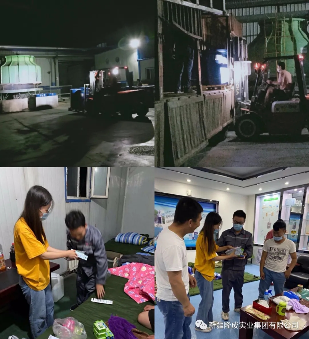 2020年7月29日凌晨,烏魯木齊疫情防控的第13天,天空掀起了夜幕,而在烏魯木齊市華泰隆化學(xué)助劑有限公司因?yàn)橐咔榉揽乇9┕ぷ?,?7名員工全部住在了廠里,人事行政部連夜購(gòu)置生活用品和被褥等物資,忙碌了一天的工友們擠在更衣室的大通鋪上稍作休整。